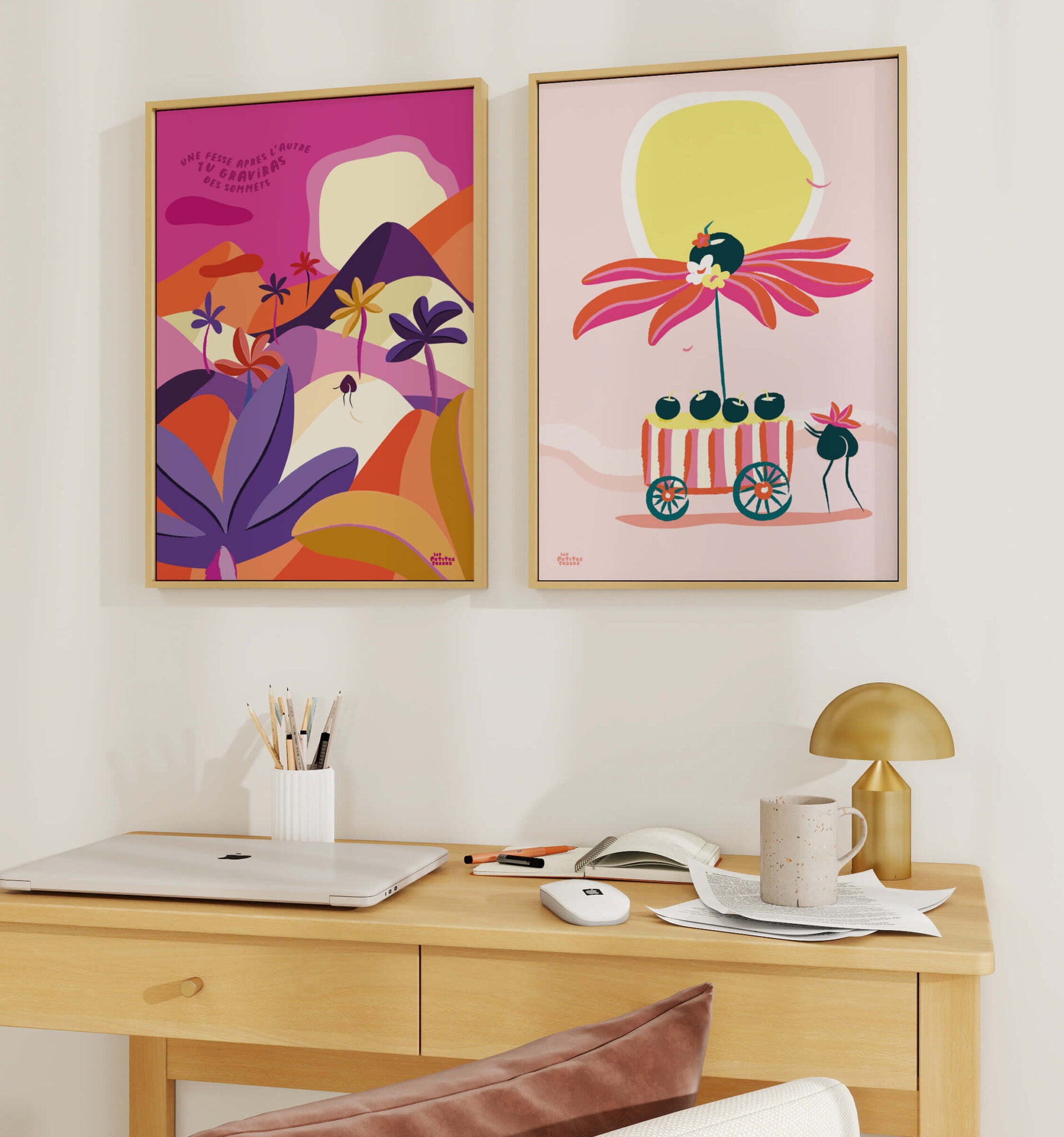Toutes les collections sont illustrées par Marie Ollier, fondatrice de la marque. Son univers se distingue par des créations douces, colorées et pleines de légèreté, pensées comme de véritables mantras de bonne humeur au quotidien. Inspirée par ses voyages, son travail mêle influences tropicales et exotiques, avec toujours une place centrale pour l’humain et les émotions. Chaque affiche est imaginée pour apporter une touche de joie, d’évasion et de couleur dans votre intérieur.