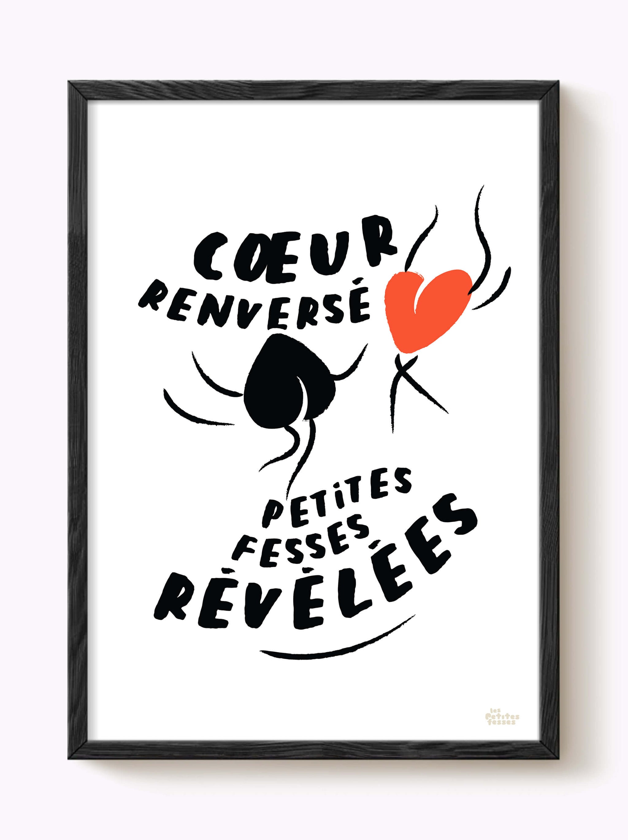 L’affiche d’amour “Cœur Renversé Révèle Tes Petites Fesses” mêle sensualité joyeuse et tendresse avec beaucoup de caractère.
