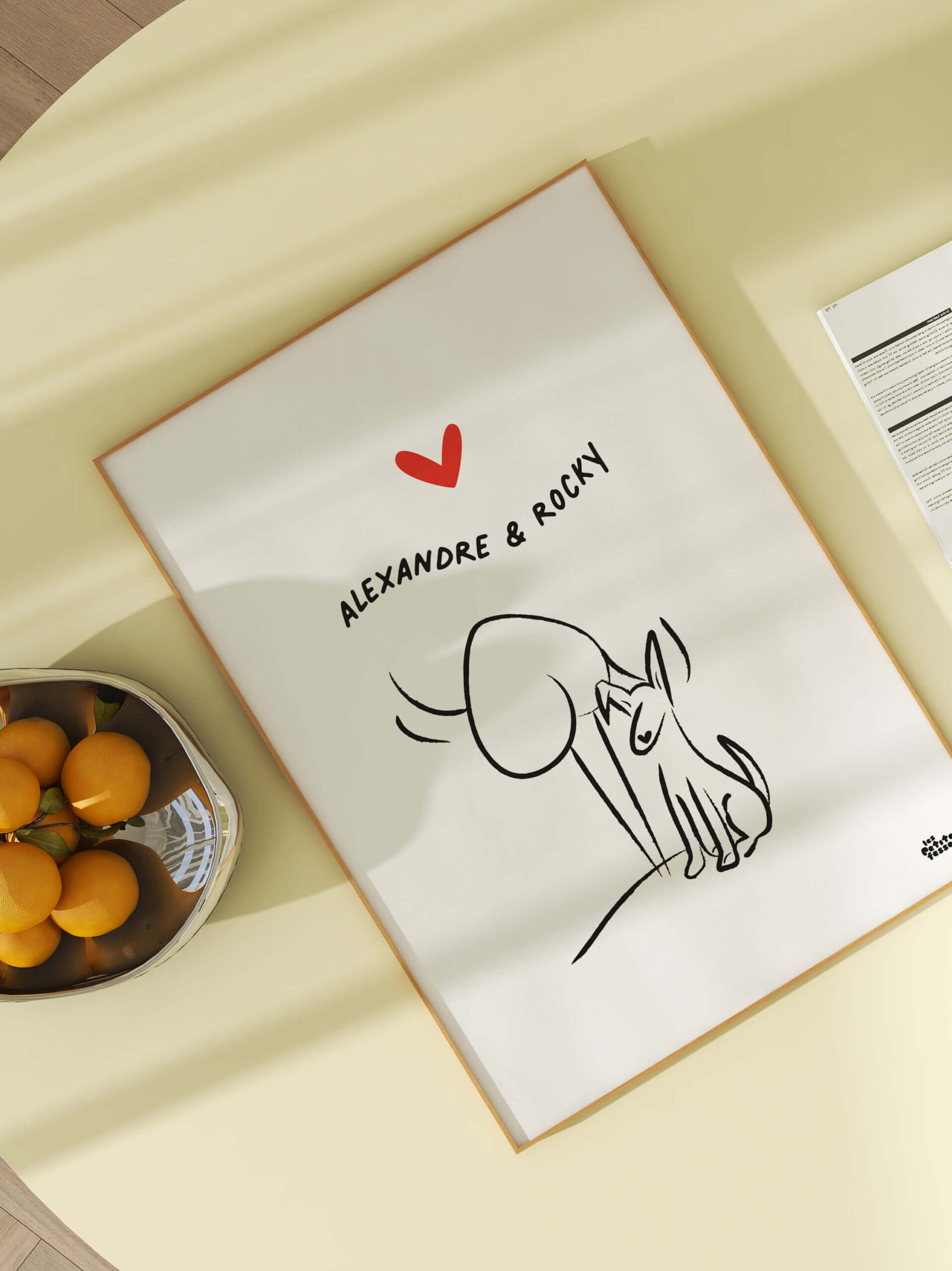 Choisissez le prénom de votre chien et celui de son maitre pour créer une scène pleine de tendresse et de caractère.