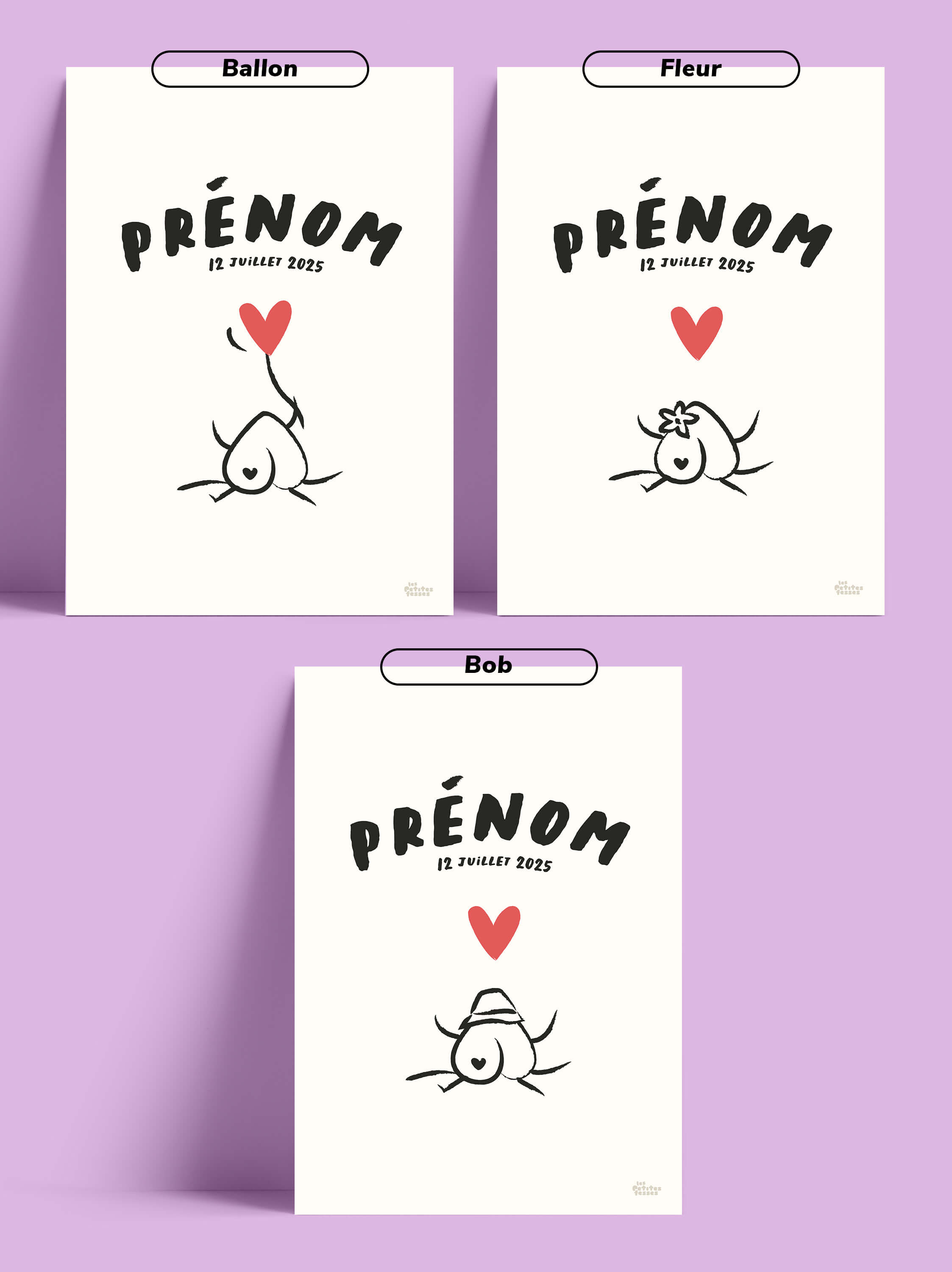 Une affiche de naissance personnalisée pleine de douceur pour célébrer l’arrivée de bébé. Indiquez simplement le prénom, et nous créons une illustration unique, imprimée sur un papier artistique de haute qualité. Une idée cadeau de naissance tendre et poétique, parfaite pour décorer la chambre de bébé.