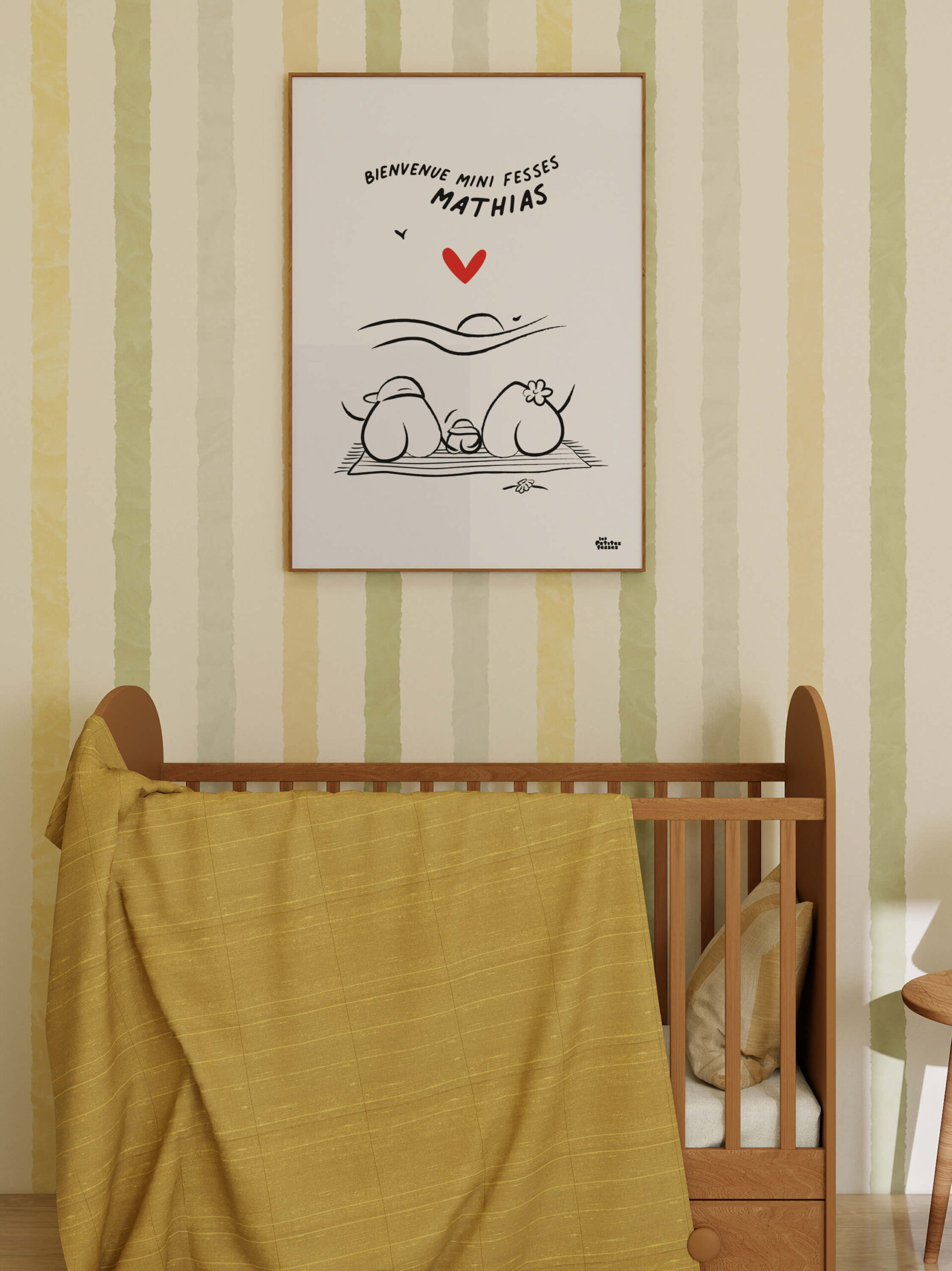 Une affiche de naissance unique et à personnaliser, vous choisissez le prénom.