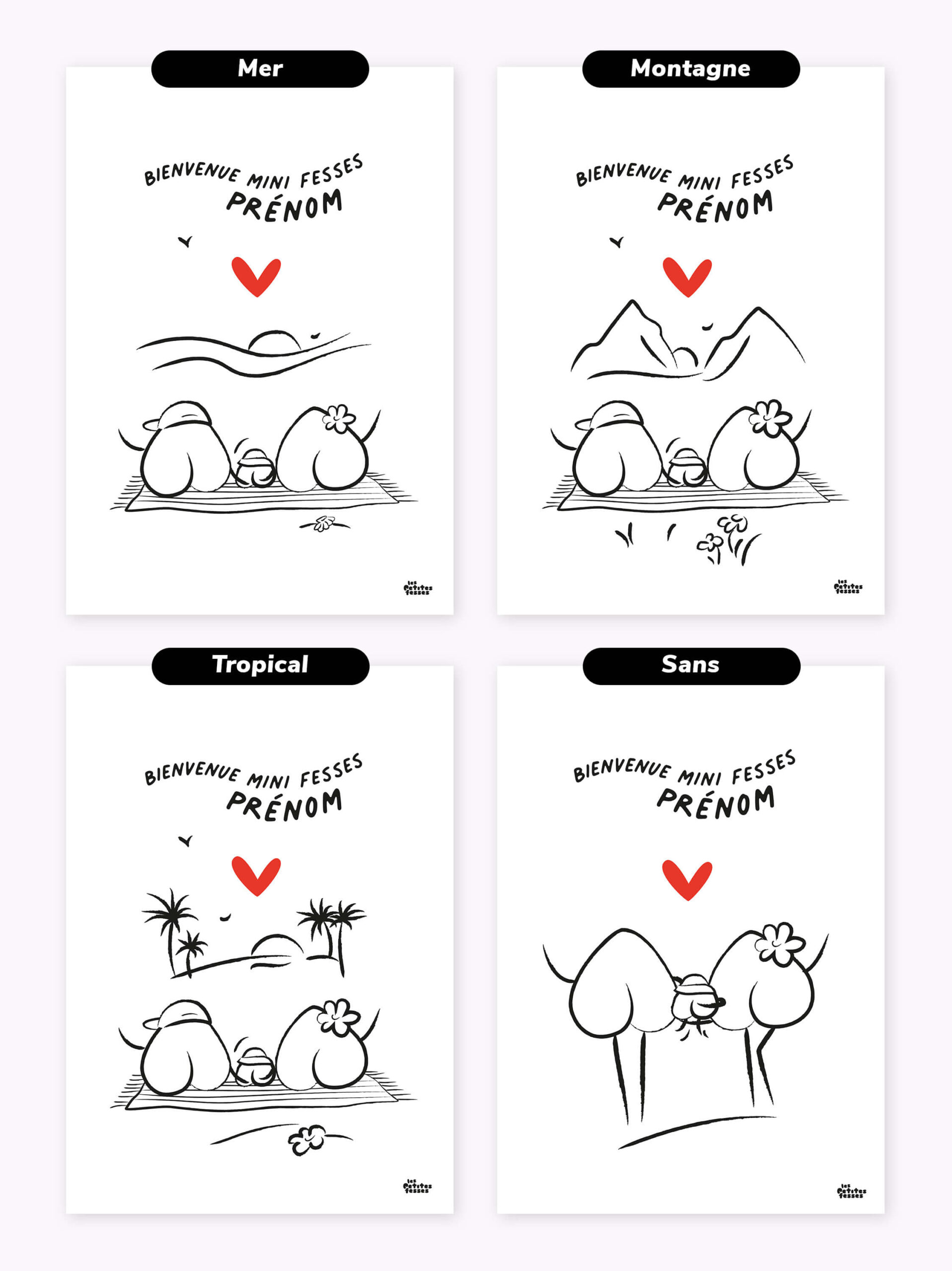 Avec ses petites fesses adorables et son design tout en tendresse, cette création célèbre l’arrivée d’un nouveau-né avec humour et poésie.