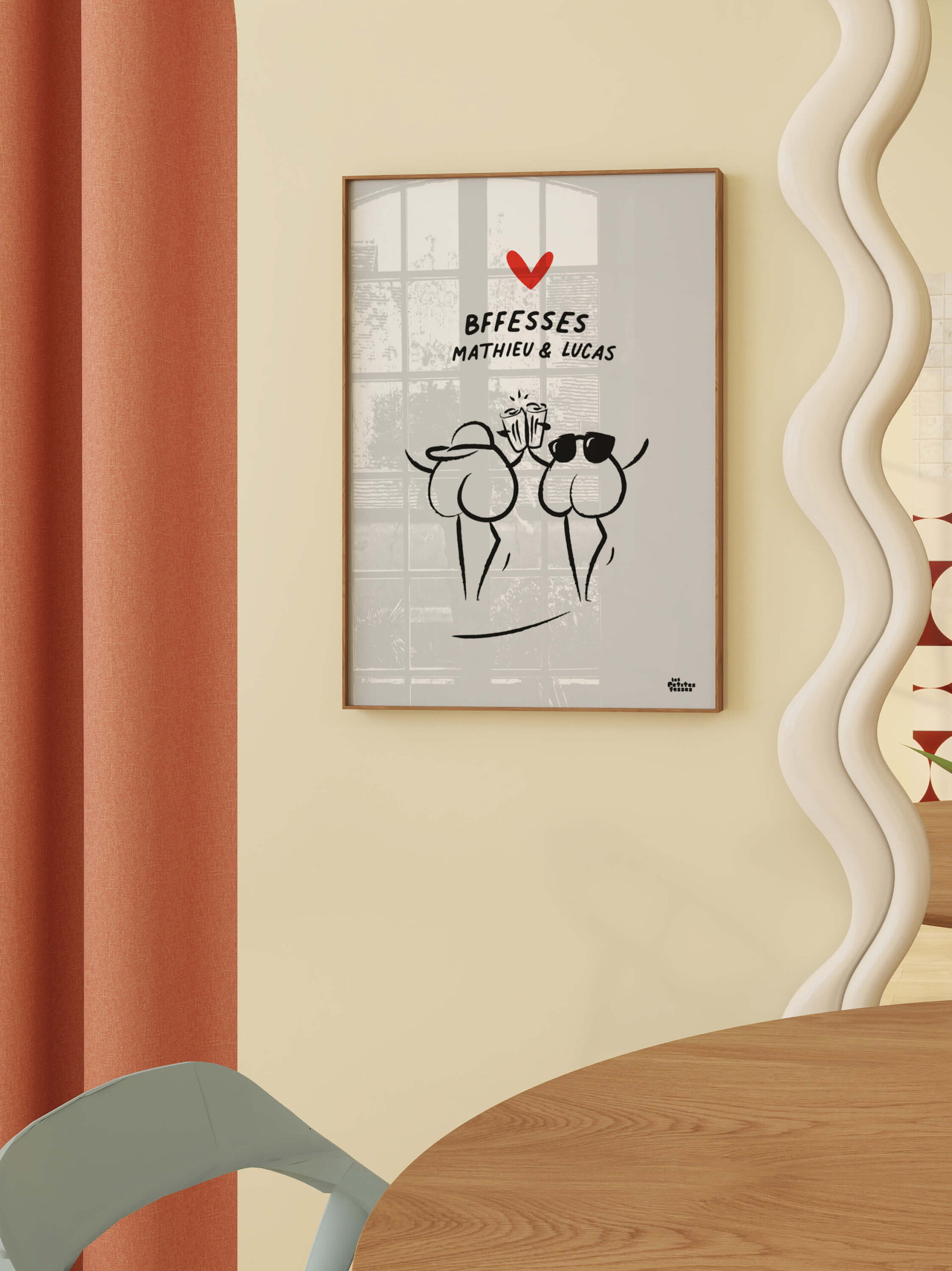 Choisissez les deux prénoms à inscrire, et laissez nous dessiner cette belle complicité avec tendresse et humour.
