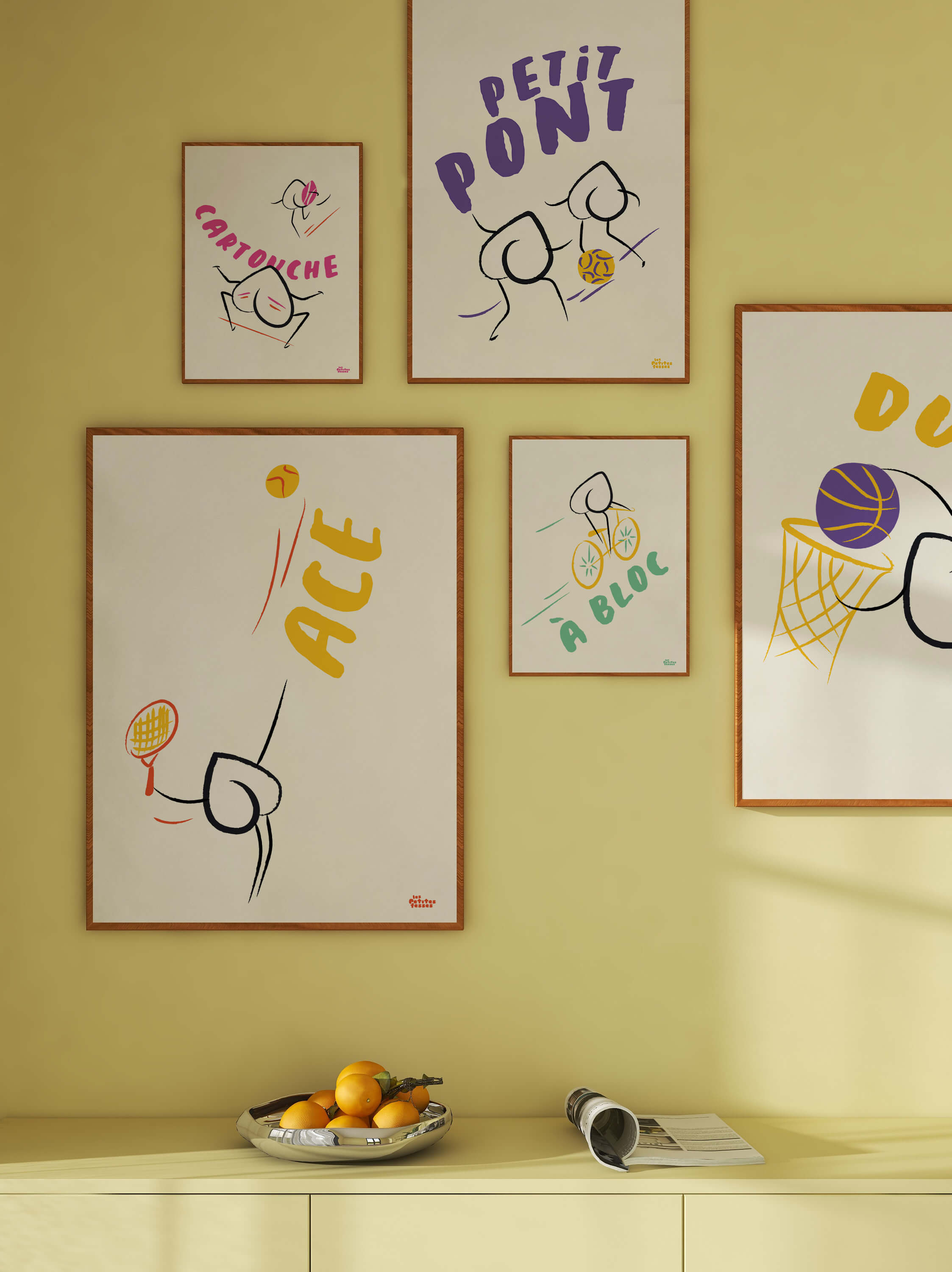 L’affiche “Ace” capture cet instant précis où tout part dans le bon timing —un geste parfait, une balle filante, et deux petites fesses prêtes à célébrer la victoire avec panache.